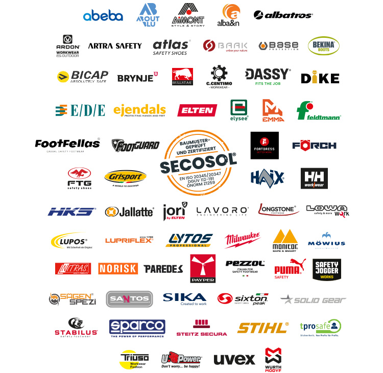 Damit die Versorgung unserer Kunden immer optimal ist, haben wir ergänzend zu unserem Secosol® Einlagensystem auch viele Sicherheitsschuhe führender Marken zur Auswahl.